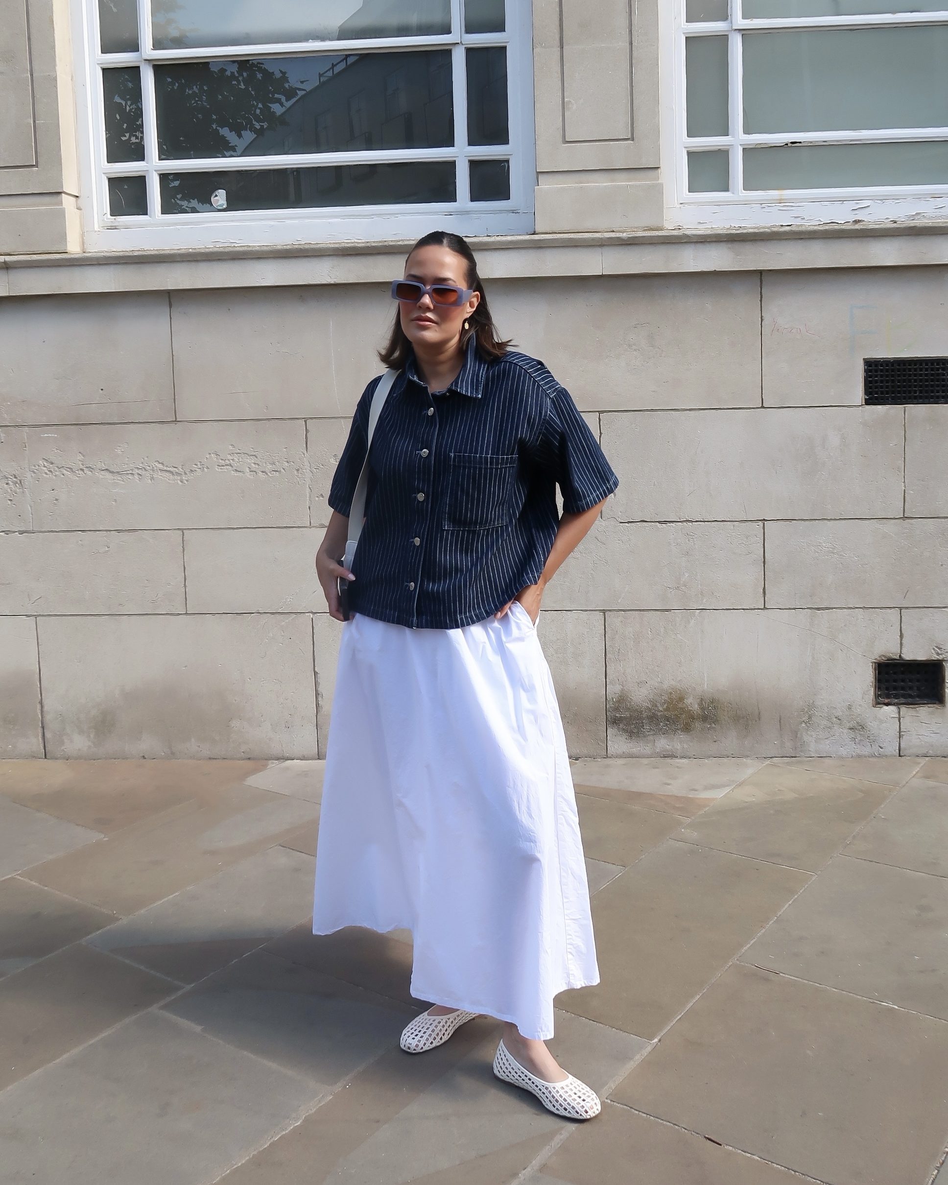 Pinstripe top: H&M | Shoulder bag: Uniqlo | White skirt: H&M | Mesh flats: H&M Turn on your JavaScript to view content *This post contains affiliate links Leave a Reply Cancel replyYour email address will not be published. Required fields are marked * Comment * Name * Email * Website Save my name, email, and website in this browser for the next time I comment